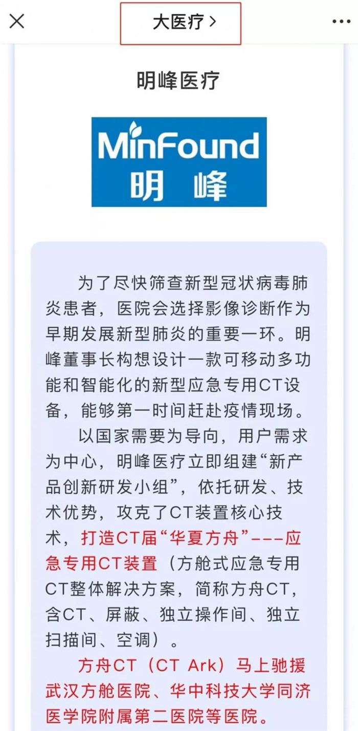 對于目前全國各醫(yī)療單位、“方艙醫(yī)院”等管理機構(gòu)收到了大量捐贈的CT機,但由于沒有獨立的防護機房而不能使用,而“方艙醫(yī)院”短時間內(nèi)也無法建立符合標準的防護機房,明峰醫(yī)療愿提供方艙式應(yīng)急專用CT整體解決方案 (含輻射防護,獨立操作間,獨立掃描間,空調(diào),紫外線消毒設(shè)備,電源分配系統(tǒng)等),利用有限資源,可以把其他公司CT設(shè)備裝進方艙,創(chuàng)造新的更大價值,通力合作打好抗疫戰(zhàn)。