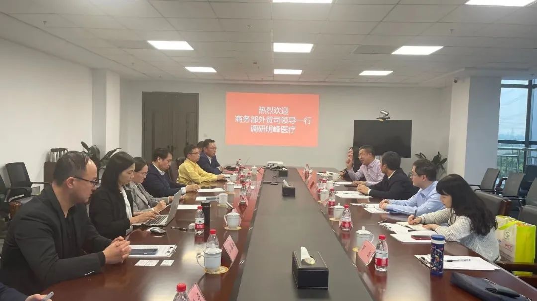 4月11日,商務(wù)部對(duì)外貿(mào)易司、中國醫(yī)藥保健品進(jìn)出口商會(huì)、浙江省商務(wù)廳和錢塘區(qū)管理委員會(huì)等一眾領(lǐng)導(dǎo)前往明峰醫(yī)療位于錢塘區(qū)醫(yī)藥港的新總部大樓進(jìn)行調(diào)研。