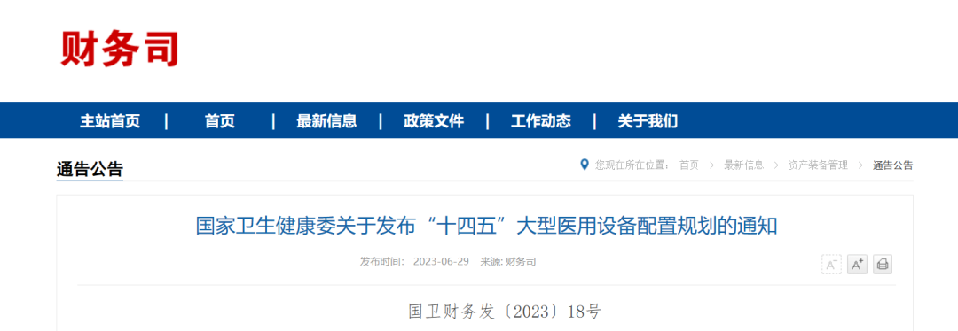 2023年3月21日,國(guó)家衛(wèi)生健康委發(fā)布《大型醫(yī)用設(shè)備配置許可管理目錄(2023年)》后,6月29日,又發(fā)布《“十四五”大型醫(yī)用設(shè)備配置規(guī)劃》,明確“十四五”期間大型醫(yī)用設(shè)備規(guī)劃配置數(shù)量和準(zhǔn)入標(biāo)準(zhǔn)。