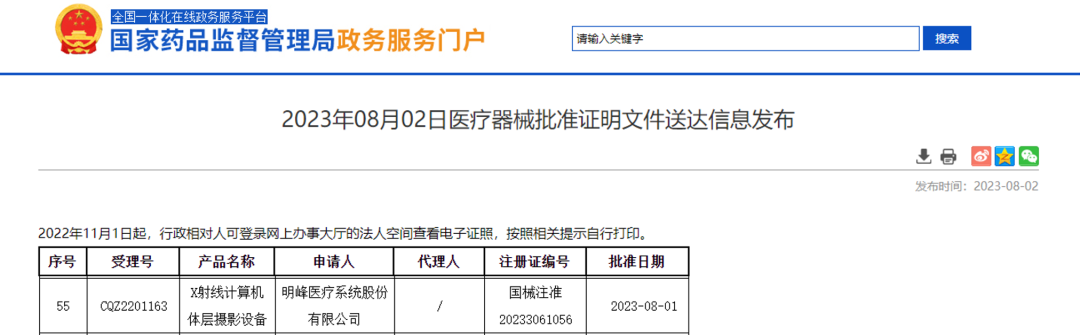 2023年8月1日,明峰醫(yī)療新一代高端全能CT——天極系列48排96層全能CT喜獲國家藥監(jiān)局NMPA認證。