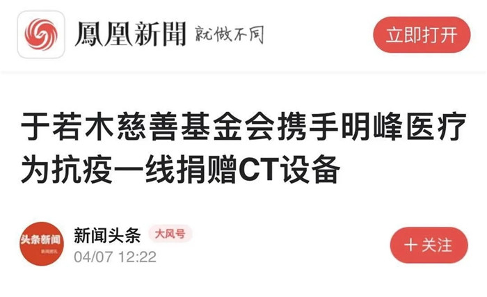 疫情爆發(fā)后,明峰醫(yī)療時刻關(guān)注疫情發(fā)展,并向奮戰(zhàn)在抗擊新型冠狀病毒前線的所有醫(yī)護人員、志愿者致以最崇高的敬意,攜手北京市于若木慈善基金會和基金會大隱公益專項基金,傾其所能為抗擊疫情做出貢獻。
