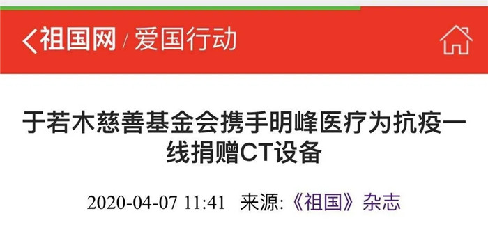 明峰醫(yī)療董事長王瑤法介紹,從2020年1月26日開始,明峰醫(yī)療在捐贈醫(yī)療影像CT設備的同時,積極聯(lián)系于若木慈善基金會和其大隱公益專項基金秘書長陳建文商議CT捐贈事宜,積極發(fā)動明峰建材、浙江海邦、浙江中環(huán)賽特、江西紹興商會愛心企業(yè),多次捐贈通用CT設備和方舟CT馳援華中科技大學同濟醫(yī)學院附屬協(xié)和醫(yī)院、湖北省第三人民醫(yī)院、湖北省中西醫(yī)結(jié)合醫(yī)院、肇慶市第一人民醫(yī)院、中山大學附屬第三醫(yī)院、南方醫(yī)科大學南方醫(yī)院、南昌大學附屬第一醫(yī)院、黃岡市中心醫(yī)院等全國多地醫(yī)療機構(gòu),捐贈總價值近5000萬元人民幣,用于進行新型冠狀病毒肺炎的一線臨床診斷,以緩解當?shù)蒯t(yī)療影像檢測。設備緊缺情況,為抗擊疫情貢獻一份力量。