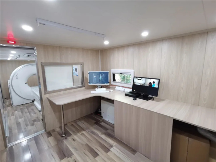另外,沒有動力單元,不受環(huán)保限制,經(jīng)濟實用;需要轉(zhuǎn)移時,可以租用牽引車,也可以多臺共用一輛牽引車,組合方式多樣快捷;節(jié)約資源,半掛車使用年限達 25 年,不會受限于牽引車使用年限(牽引車通常為柴油,一定年限報廢處理)。因此,適應(yīng)各種環(huán)境下CT掃描,為公益體檢項目、搶險救災(zāi)、戰(zhàn)爭時提供可靠醫(yī)療保證,也可成為醫(yī)院常規(guī)檢查需要,分流病人,同時支持醫(yī)共體系統(tǒng)內(nèi)的醫(yī)院定期到現(xiàn)場進行診療工作。