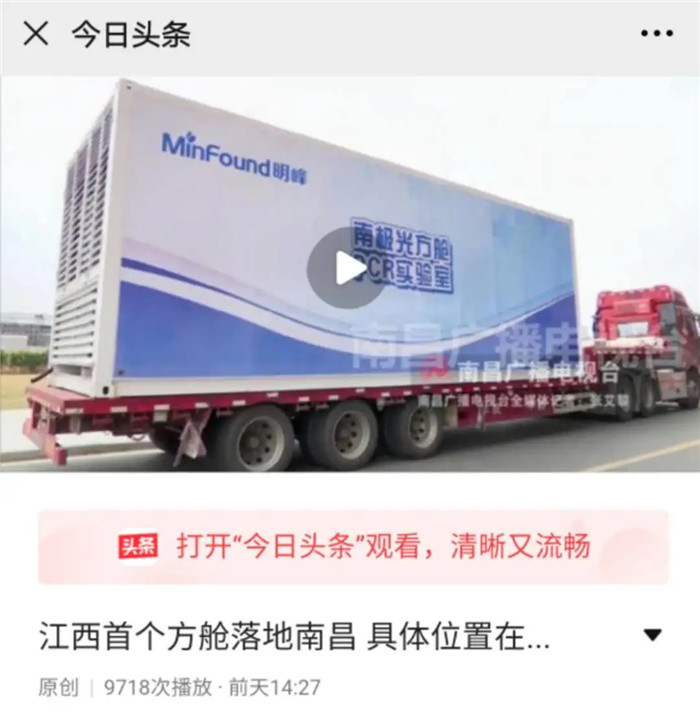 明峰醫(yī)療南極光方艙PCR實驗室在南昌落地,同時開啟了全面的市場銷售,正式開始接受訂單,詳詢公司服務熱線:400-035-8898。