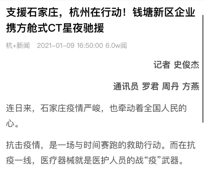 各大媒體報道,明峰醫(yī)療車載CT馳援河北